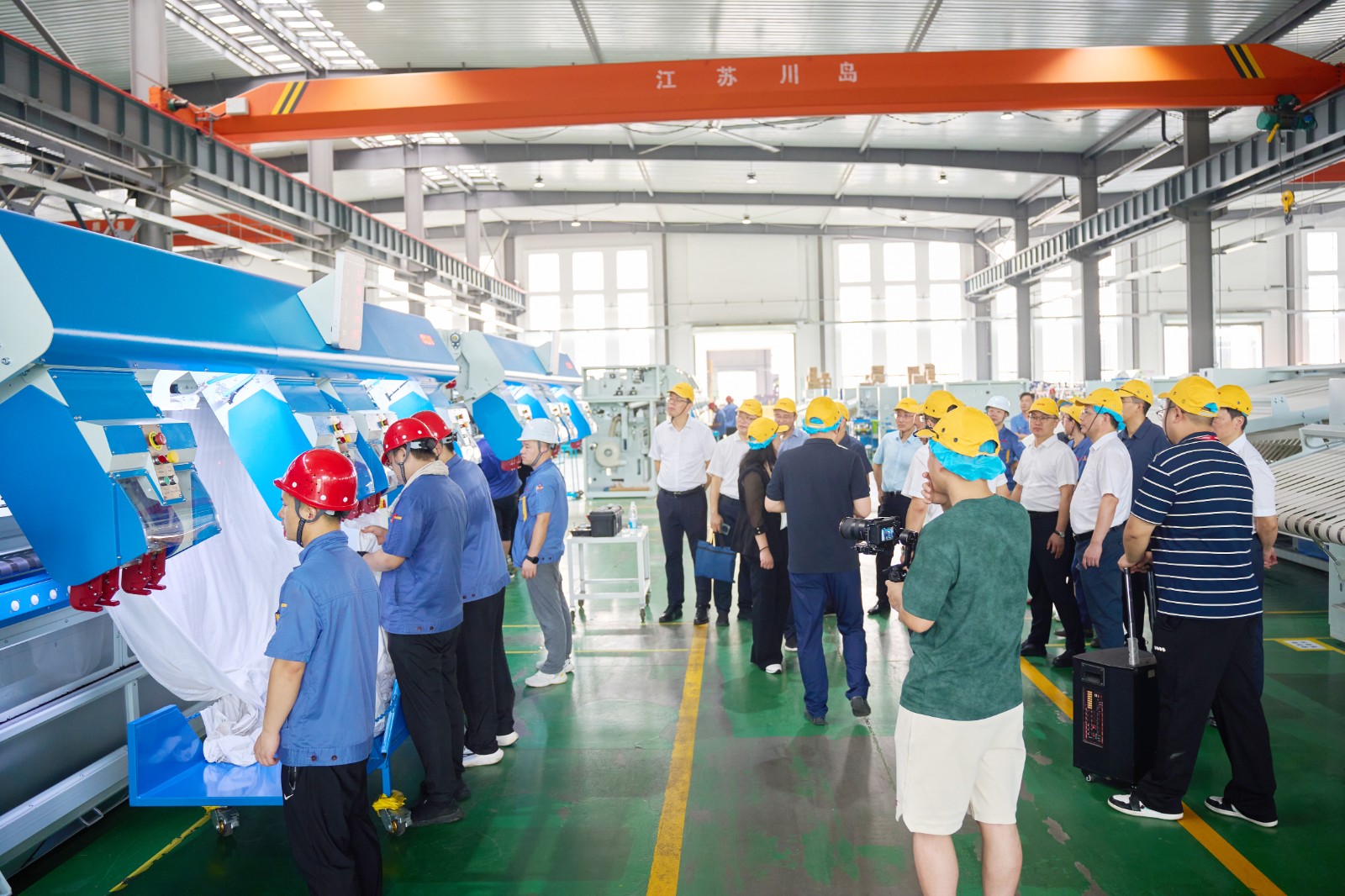 王市長(zhǎng)一行深入生產(chǎn)一線,參觀了智能柔性鈑金車(chē)間、機(jī)器人焊接車(chē)間、自動(dòng)化設(shè)備裝配車(chē)間,觀看了川島所生產(chǎn)的洗衣龍、熨燙線等智能化洗滌設(shè)備的運(yùn)行視頻,仔細(xì)聽(tīng)取關(guān)于我司焊接生產(chǎn)線智能化技改項(xiàng)目、機(jī)加工生產(chǎn)線智能化技改項(xiàng)目的推進(jìn)情況,以及采用ERP、MES等數(shù)字化管理系統(tǒng),在實(shí)際生產(chǎn)管理中的協(xié)同應(yīng)用。