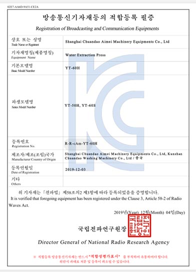 壓榨機(jī)韓國(guó)KC證書