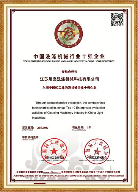 中國(guó)洗滌機(jī)械行業(yè)十強(qiáng)企業(yè)