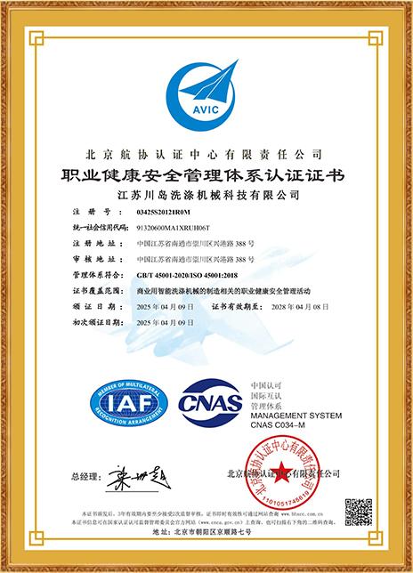 職業(yè)健康安全管理體系認(rèn)證證書