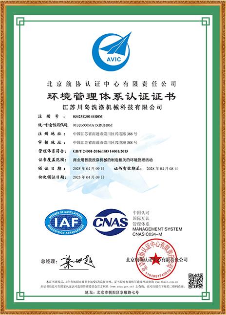 環(huán)境管理體系認(rèn)證證書
